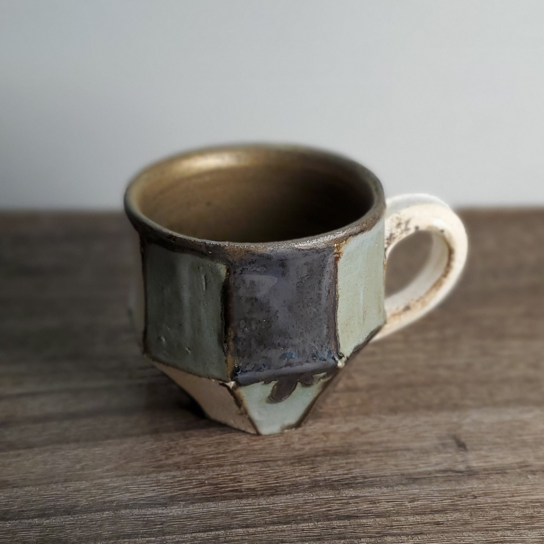 レトロな雰囲気漂うアンティークブルーグレーの面取りカラーマグ。手にするとずっと触れていたくなる、優しい質感と重量感が特徴です。一つひとつが丁寧に作られているため、どれも風合いが異なります。